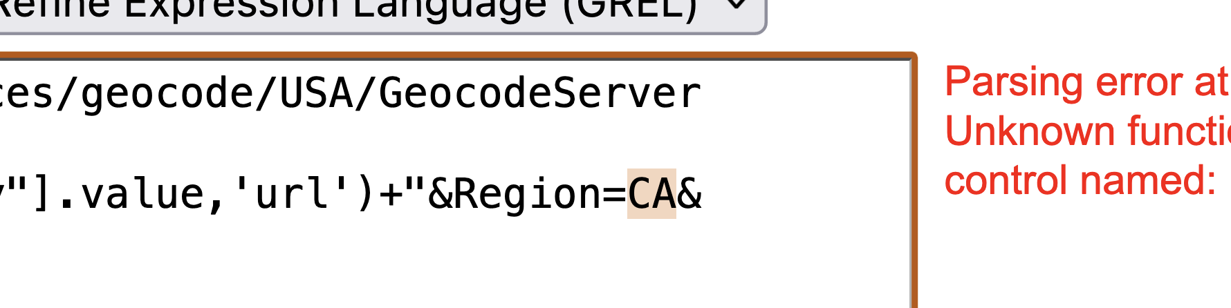 For the needs of this exercise, OpenRefine allows us to build and submit URLs to a web service (like a geocoding API) over and over tens, hundreds, even thousands or more times, saving us the trouble of typing a URL into a browser and copy & pasting values, one at a time. OpenRefine runs in your browser, but does so locally by installing itself as a sort of server running on your own machine. OpenRefine used to be called GoogleRefine, but has recently been re-branded, so much of the support materials you will find on-line will still refer to GoogleRefine.