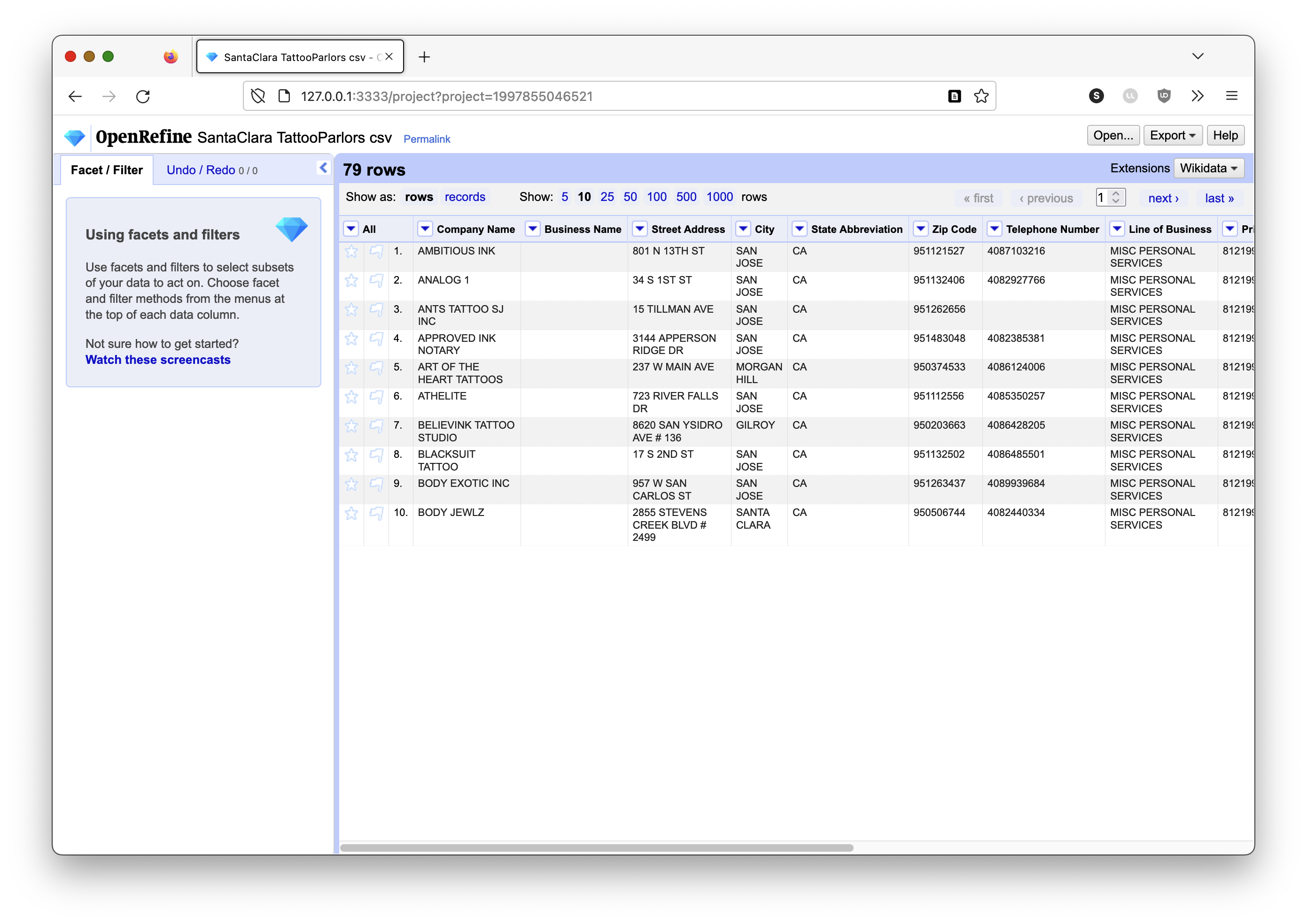 You will need to download OpenRefine in order to complete this exercise. You can get the appropriate version for your operating system from OpenRefine.org. In the meantime, there are 3 videos on the OpenRefine front page. You should take a look at all three, because they give a great, concise overview of many of the capabilities of OpenRefine.